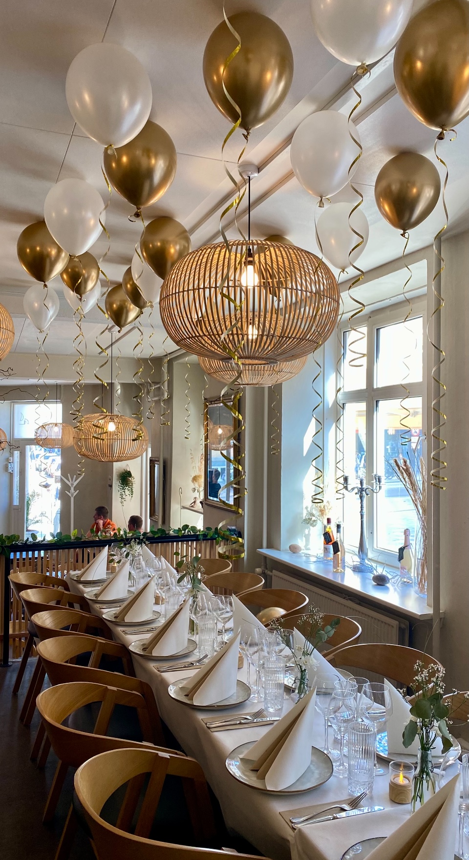- Vi sørger for indkøb af pynt som fx: lys, tyl, blomster, balloner og diverse dekorationer.